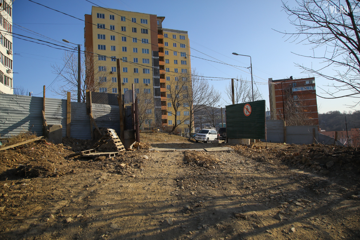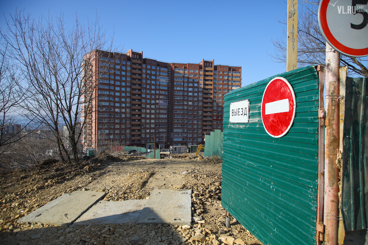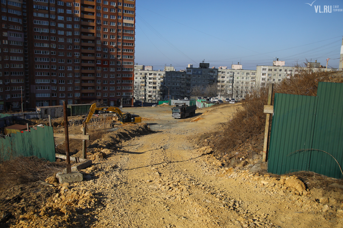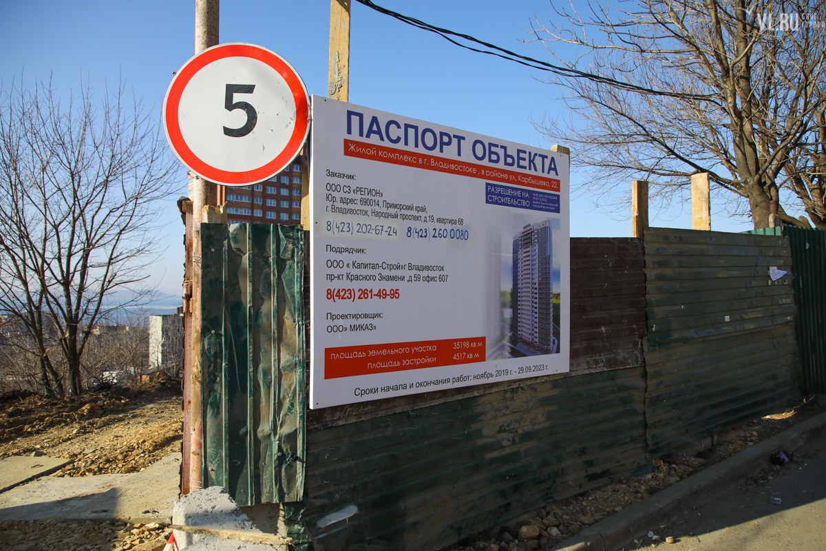 На земельном участке 25:28:040006:16121 недавно снова закипела стройка — до этого пустырь никто не трогал много лет. Согласно паспорту объекта, дом планируется один в 25 этажей. Хотя местные жители утверждают, что их будет два. Как бы то ни было, проектную декларацию никто в глаза не видел, хотя она должна быть по закону выложена в общий доступ. Номер разрешения на строительство тоже написан на паспорте объекта, хотя его нет в реестрах управления градостроительства и архитектуры ни за 2018, ни за 2019 год. Стройплощадка на городском геоинформационном портале maps.vlc.ru не обозначена.