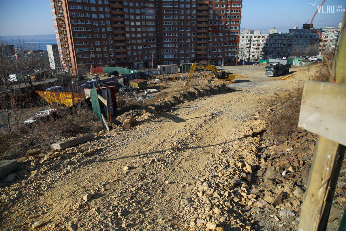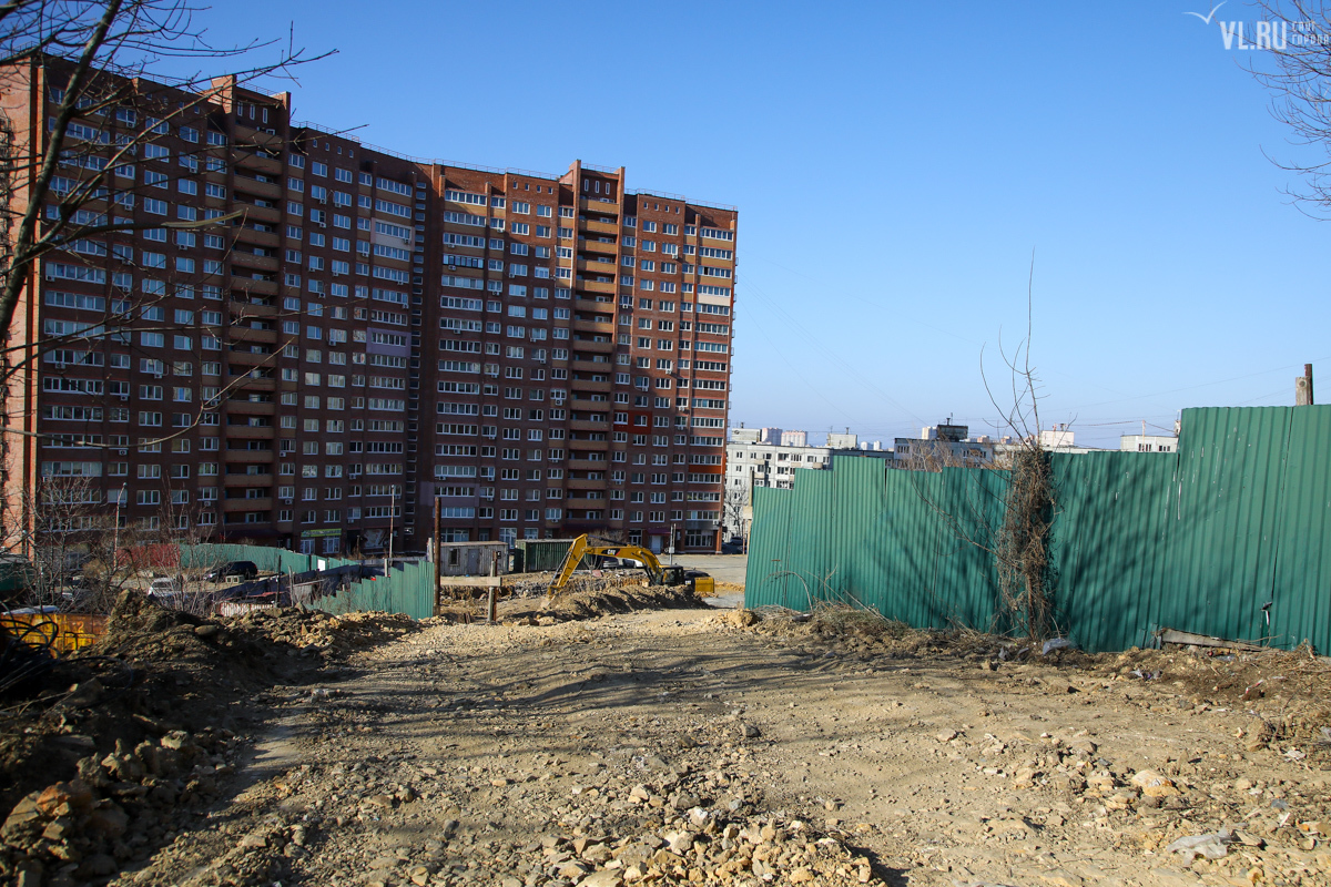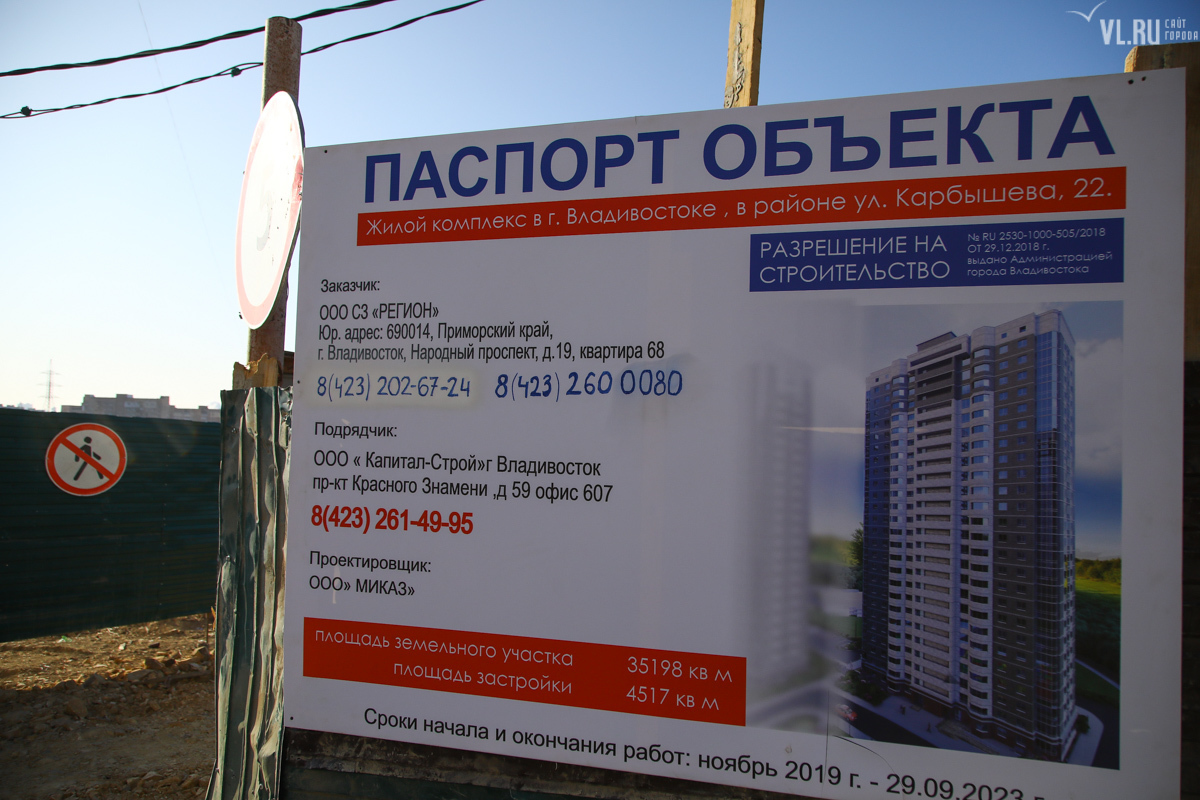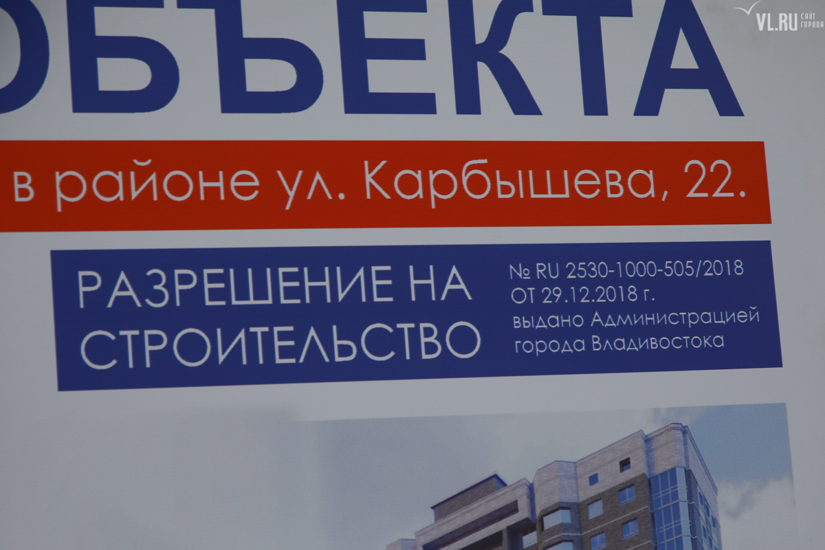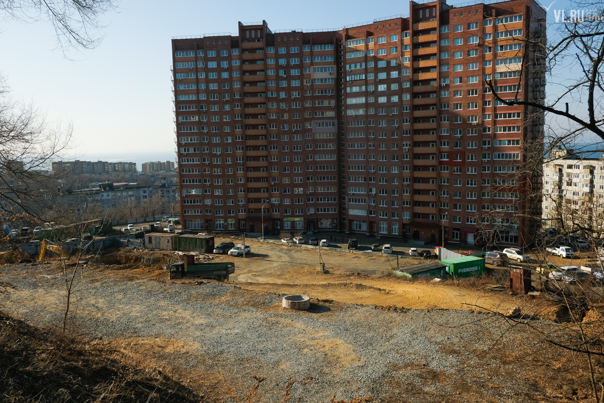 На земельном участке 25:28:040006:16121 недавно снова закипела стройка — до этого пустырь никто не трогал много лет. Согласно паспорту объекта, дом планируется один в 25 этажей. Хотя местные жители утверждают, что их будет два. Как бы то ни было, проектную декларацию никто в глаза не видел, хотя она должна быть по закону выложена в общий доступ. Номер разрешения на строительство тоже написан на паспорте объекта, хотя его нет в реестрах управления градостроительства и архитектуры ни за 2018, ни за 2019 год. Стройплощадка на городском геоинформационном портале maps.vlc.ru не обозначена.