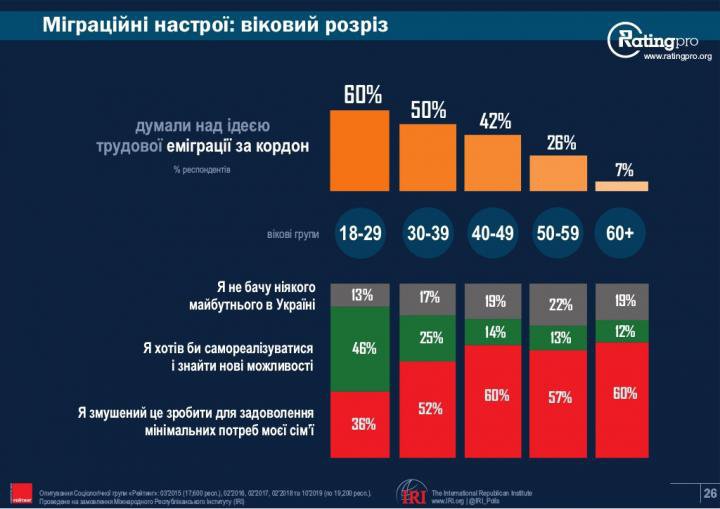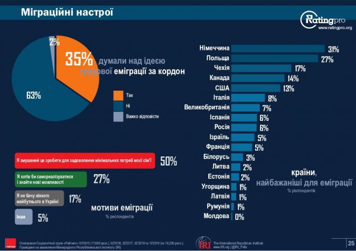 За даними опитування, проведеного у вересні цьогоріч, 50% громадян хочуть виїхати за кордон, щоб забезпечити сім'ю, передає соціологічна група "Рейтинг".