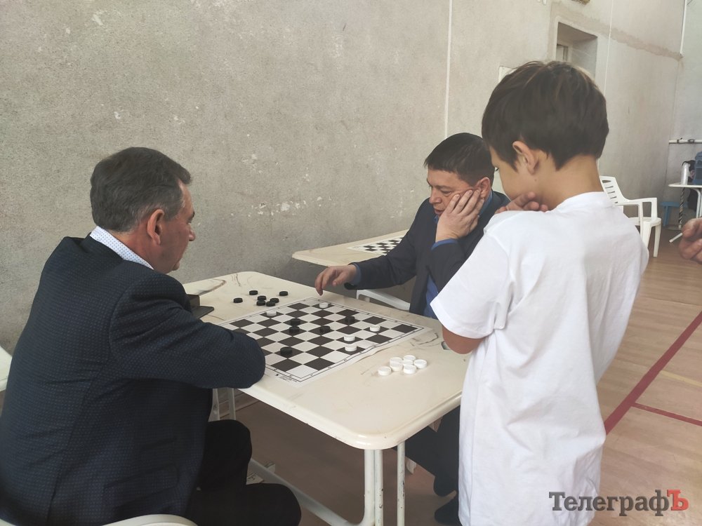 Олександр Коркішко – депутат Кременчуцької міської ради й багаторазовий переможець міських та обласних змагань з шашок. Поки Коркішко змагався з керівником сектору зв’язків з громадськістю «Укртатнафти» Сергієм Біленьким, за ними спостерігали діти.