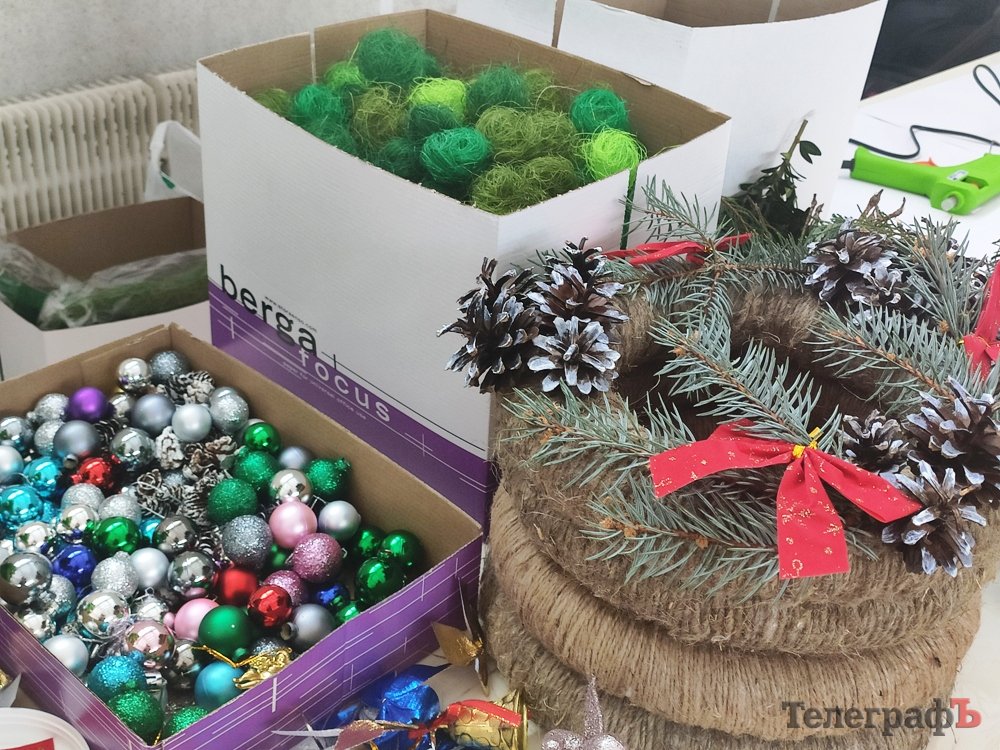 Крім спортивних змагань діти мали змогу створити новорічний настрій. Біля столів дорослі з дітьми готували новорічні вінки та ялинки з кульок.