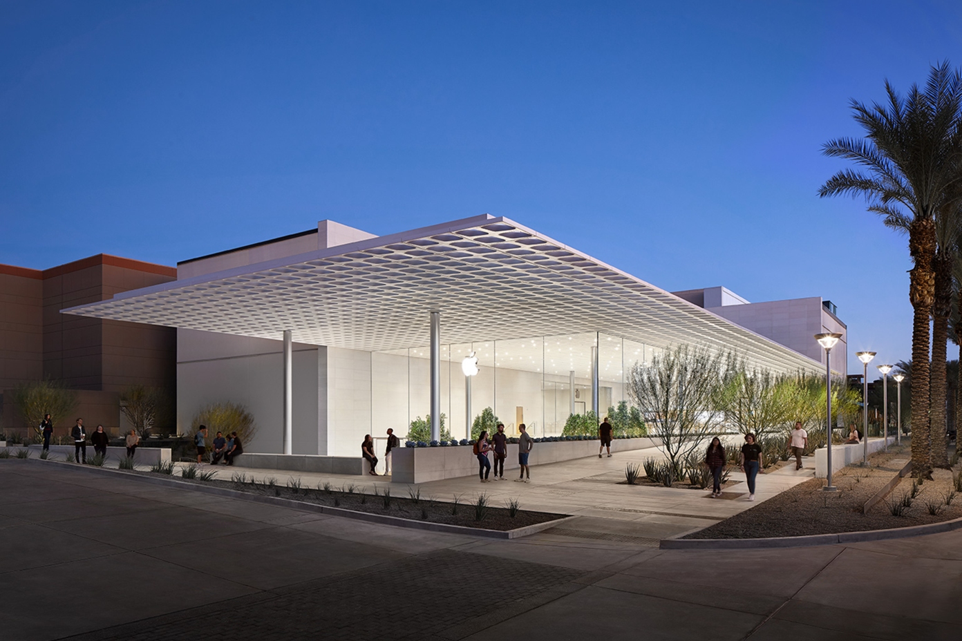 Apple Store ve Scottsdale Fashion Square se skutečně může pochlubit řadou neobvyklých designových prvků, které u řady ostatních Apple prodejen nenajdete. Prodejně dominuje obrovská plochá střecha, která poskytuje stín i části exteriéru před budovou prodejny.