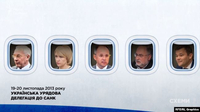 Журналісти отримали список учасників делегації 19-20 листопада 2013-го року. Серед них перший заступник міністра закордонних справ Руслан Демченко, заступник керівника секретаріату Кабміну Сергій Камишев, перша заступниця міністра юстиції Інна Ємельянова, посол України в РФ Володимир Єльченко та, як стало відомо раніше, радник прем'єр-міністра Азарова Андрій Богдан (усі посади станом на листопад 2013-го).