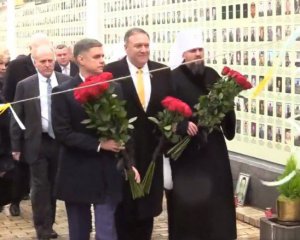 Державний секретар США Майк Помпео поклав квіти до меморіалу "Стіна пам'яті загиблих за Україну" біля Михайлівського Золотоверхого монастиря.