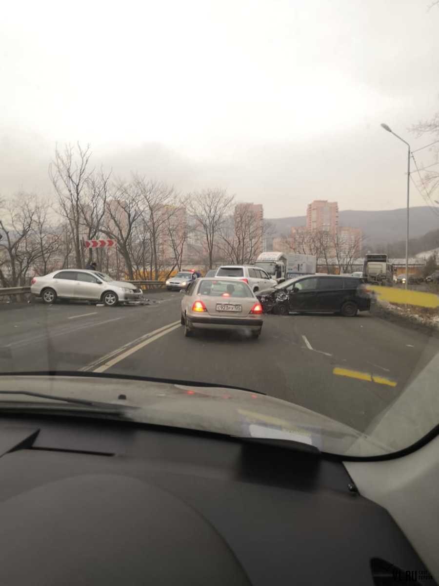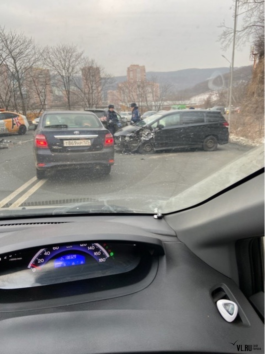 Как сообщили VL.ru в пресс-службе ГИБДД России по Владивостоку, ДТП произошло на участке дороги от БАМа на Выселковую. В 07:50 в районе Днепровской, 150 столкнулись Toyota Corolla Axio и Toyota Wish. После удара автомобили откинуло друг от друга на разные полосы дорожного движения, из-за чего образовались пробки в обе стороны на несколько десятков метров.
