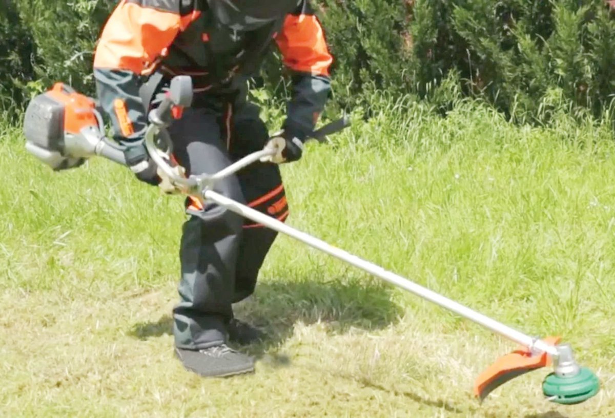 — Порівняно з побутовими — це небо і земля, — додає Орлов. — У них легкий чотиритактний двигун. Економний, працює тихо, на високих обертах, майже не перегрівається. Коса має довгу шину для ширшого захвату, зручну ручку і ремені для носіння. Такі комплектують бобіною для волосіні, трилопатевим диском і фрезою. Першою косять м'яку траву, другим — товсті високі бур'яни, третьою можна різати кущі й тонкі дерева.