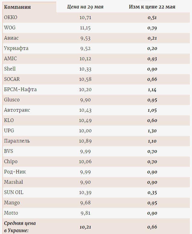 На АЗС ОККО за тиждень ціни зросли на 50 коп./л, KLO - 60 коп./л, WOG - 80 коп./л. Мережі UGP, Glusco, "БРСМ-Нафта" підвищили вартість автогазу на 0,90-1,2 грн/л.