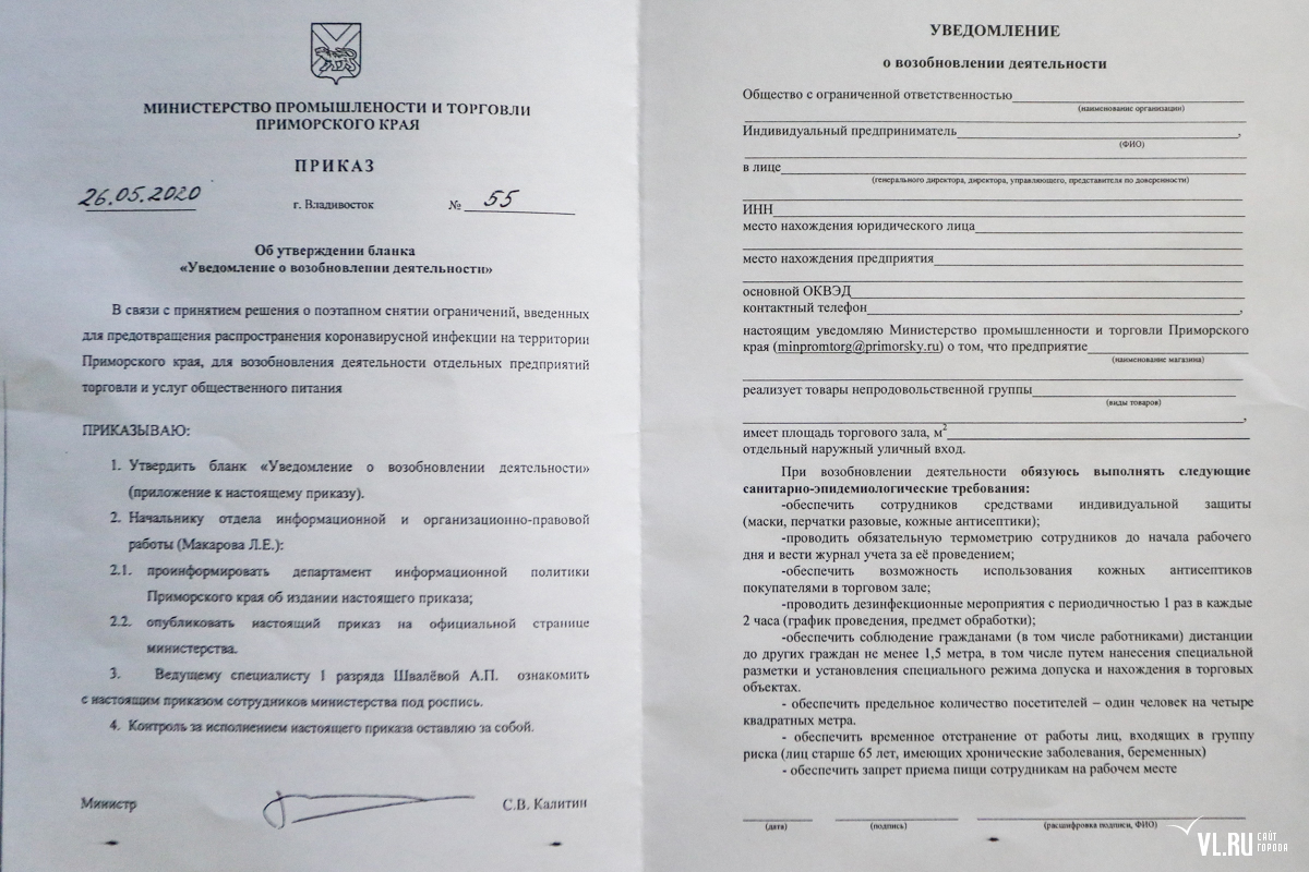 Напомним, с 27 мая в Приморье разрешили торговлю непродовольственными товарами, не включёнными в список «первой необходимости». Однако, чтобы возобновить работу, нужно выполнить ряд условий.