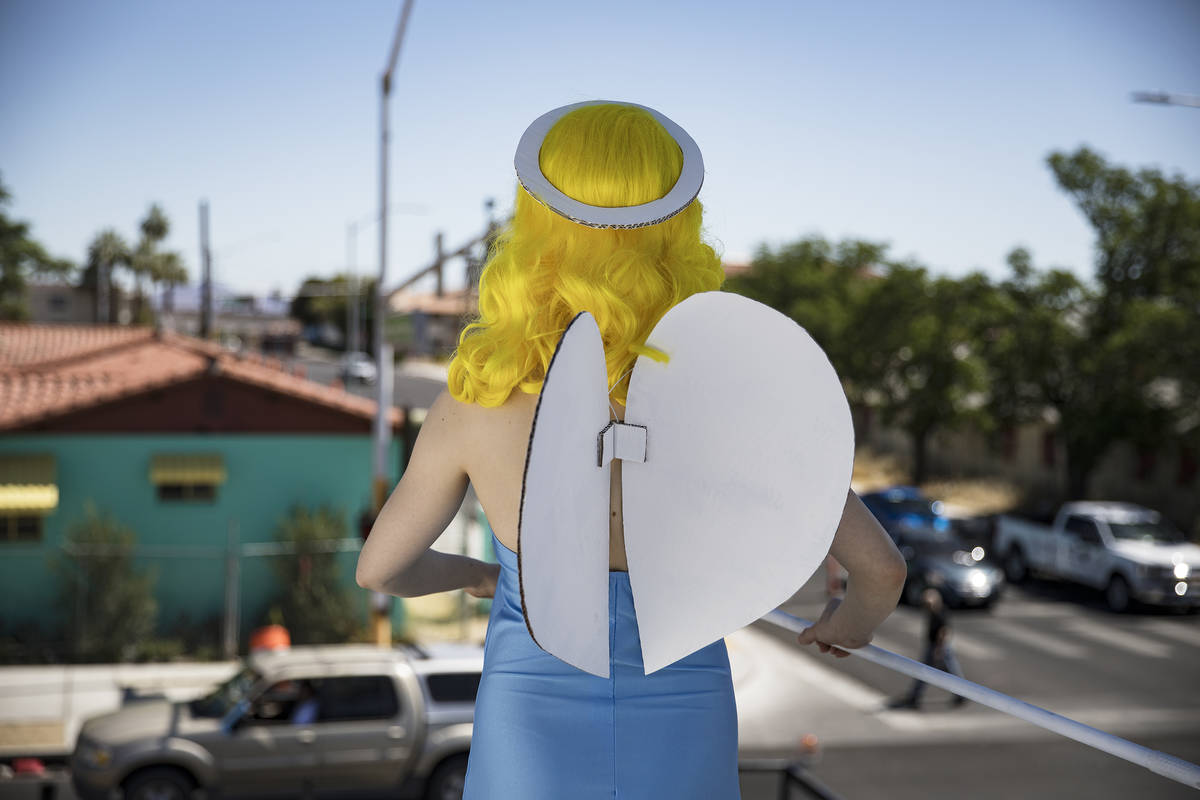Hogan, who owns the FloraPop wedding experience and runs Sure Thing wedding boutique with two friends, has started putting on one-woman performances as the Blue Angel, the statue that stood watch for 60 years over the former Blue Angel Motel in downtown Las Vegas.